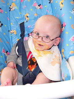 One of our big concerns is that they are still growing very slowly. They are almost 9 months old. Katelyn is 10lbs 10 oz. and Brandon is 11lbs. 7oz. One of the things we are doing to help them grow is feeding them solids 3 times a day. Despite her smaller size, Katelyn eats a lot. She is very messy but she loves to eat. She is also very active and one of the therapists was pretty sure that her high level of activity was burning a lot of calories.